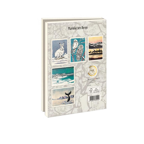 Kaartenmapje Arctic Snow 1 met 5 verschillende dessins , in totaal 10 kaarten met enveloppen en 15 stickers.