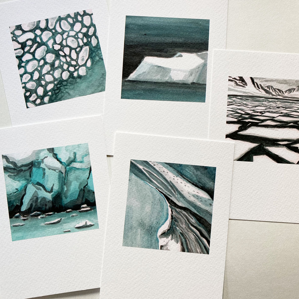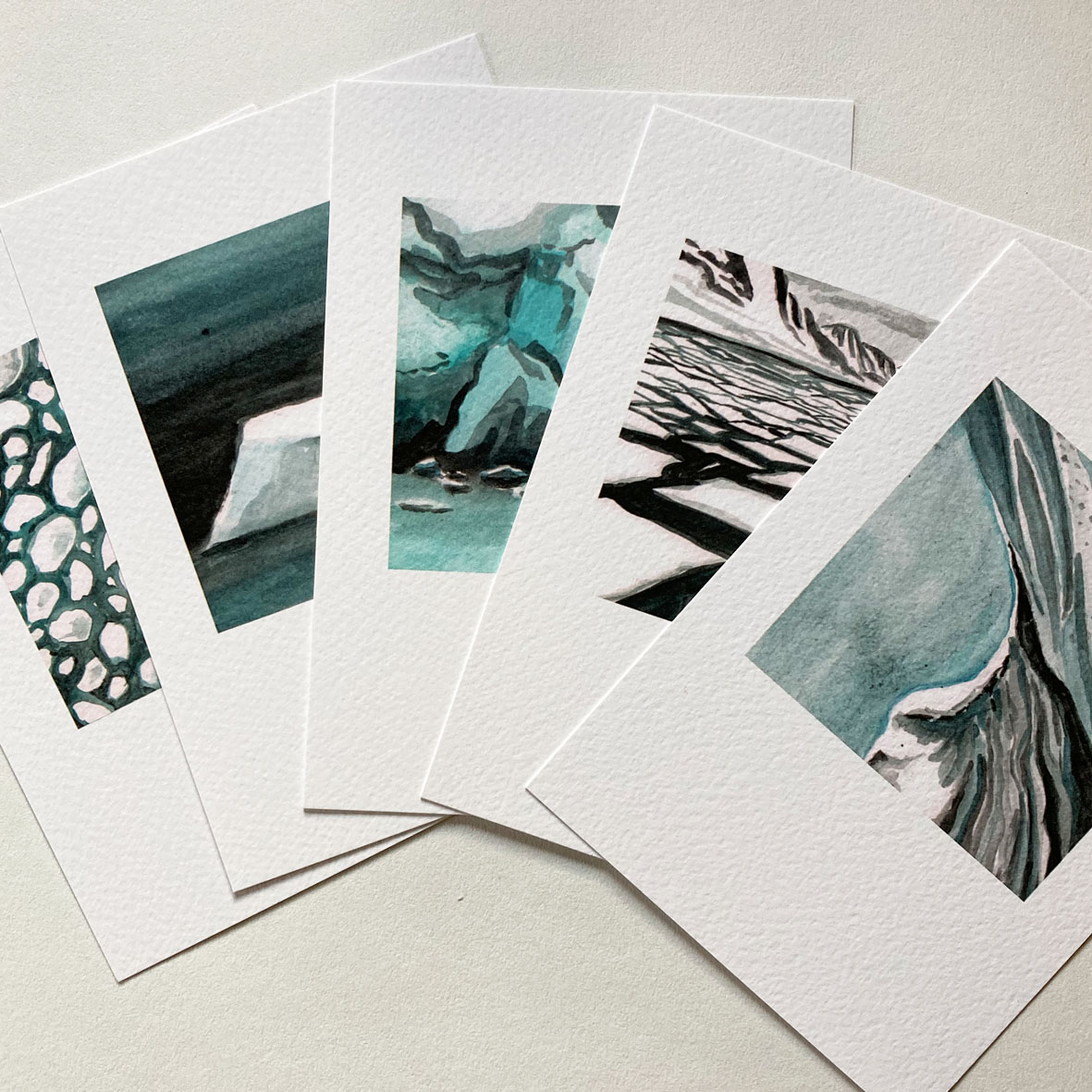 Kaartenset met 5 kaarten geïnspireerd op het ijs in en om het noordelijke eiland Spitsberge/Svalbard