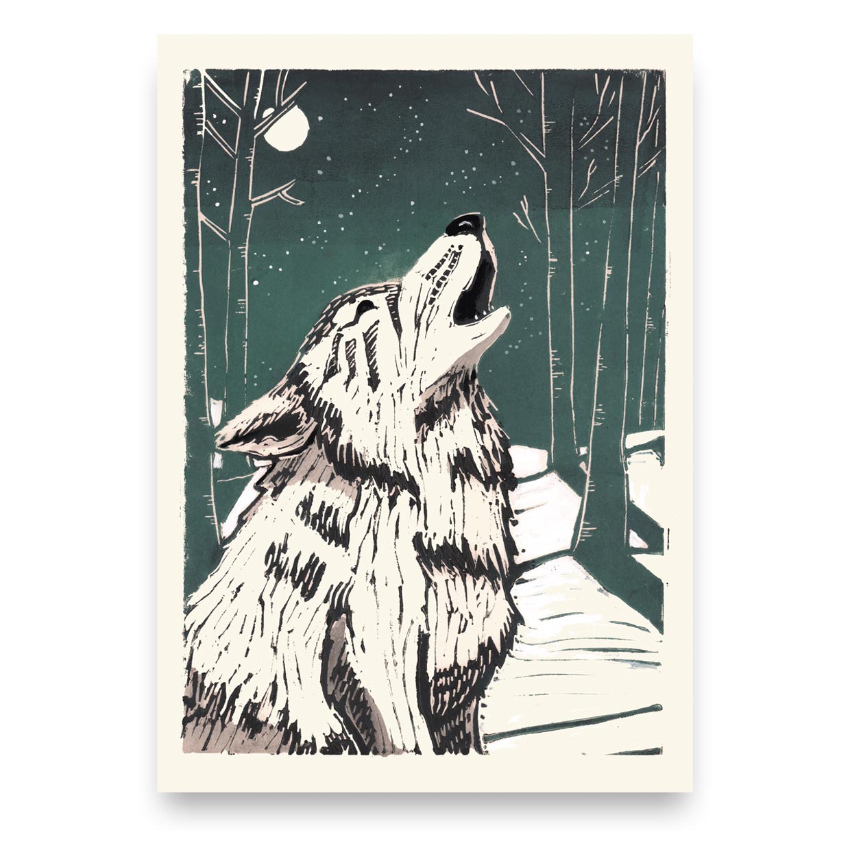Art print op A4 op mooi robuust papier. De afbeelding is van de poolwolf uit het boek NOORD.