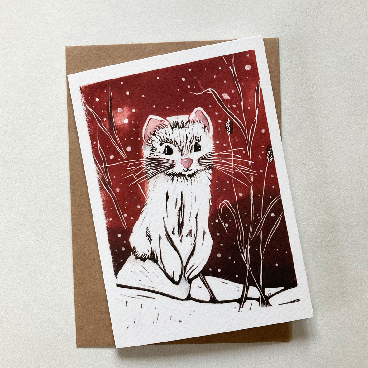 luxe kaart met envelop van de hermelijn uit het boek Noord.
