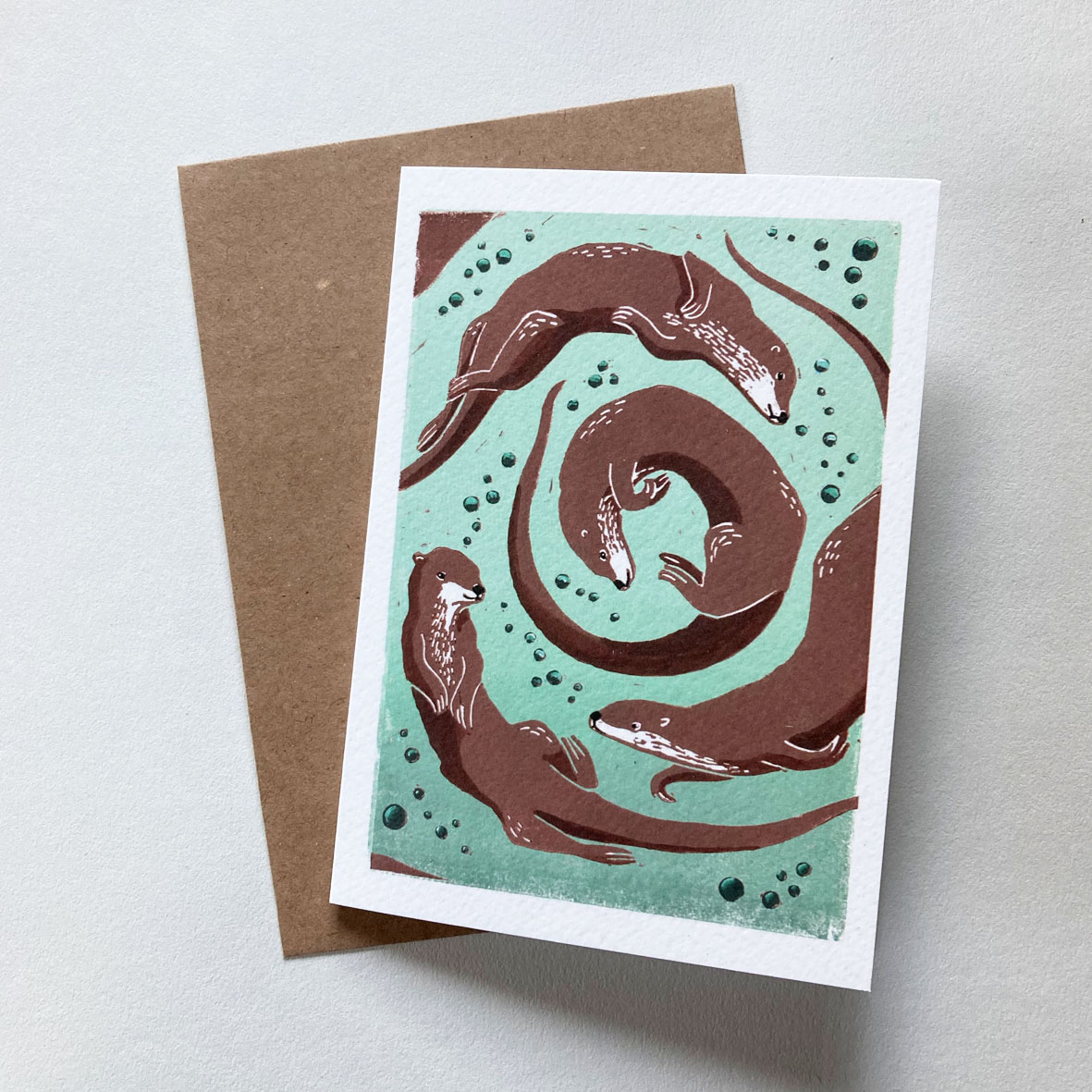 luxe kaart met envelop en illustratie van de otters uit het boek Noord.